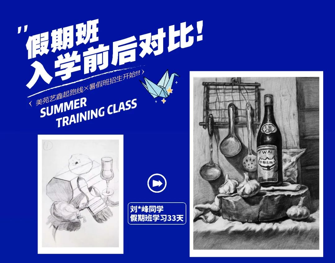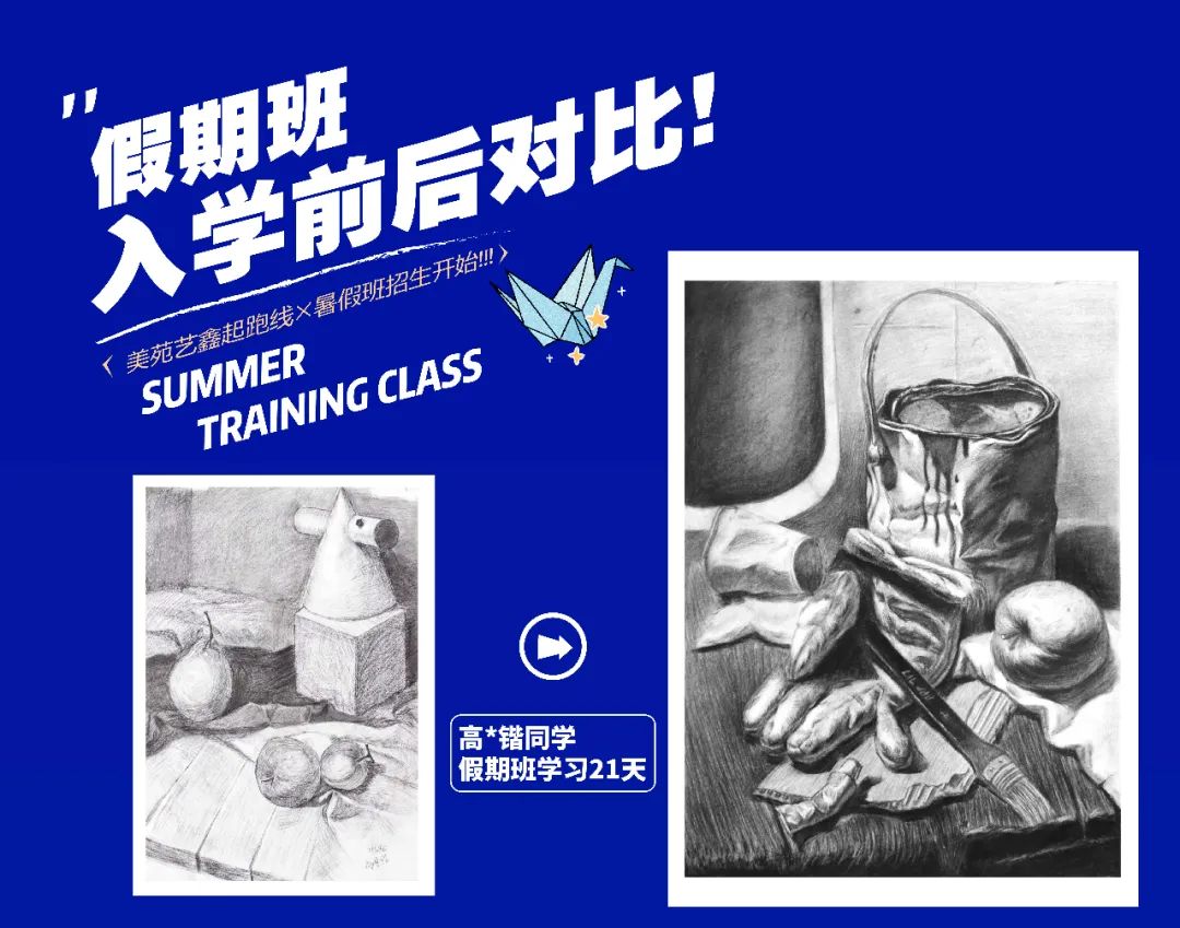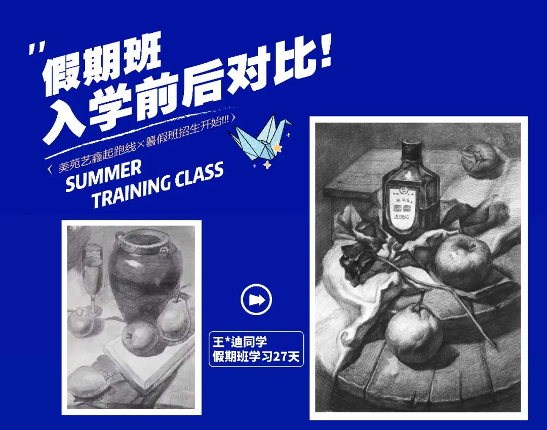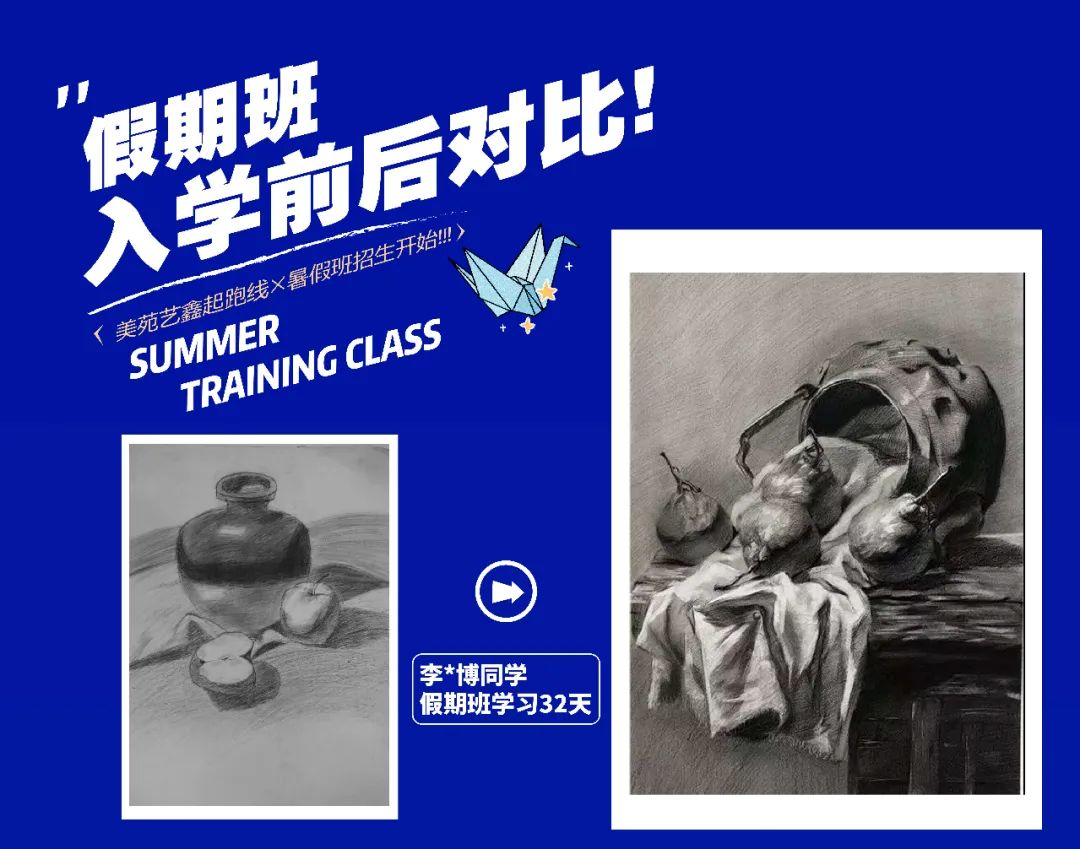 大多數(shù)有意向參加暑假班的學生,都是奔都是奔著藝考這個最終目標來的。無論現(xiàn)在處于學習的哪個階段,提早一些時間接觸美術,總能在最終的時刻獲取一定量的優(yōu)勢,這個優(yōu)勢可能只是幾分之差,但可供的選擇確實天差地別。可以這樣說,通過歷年來的實際情況看,因為一分之差而錯失心儀院校的學生大有人在。