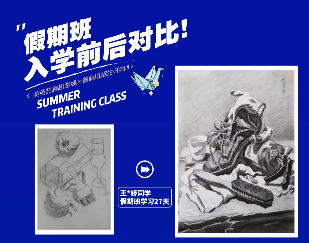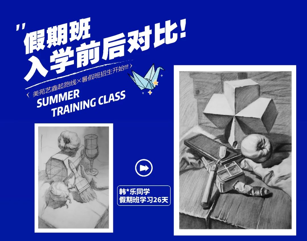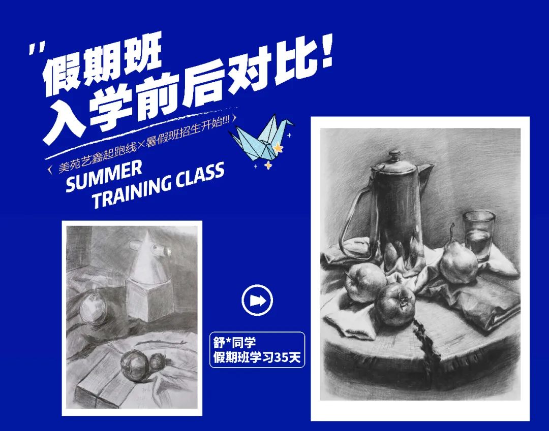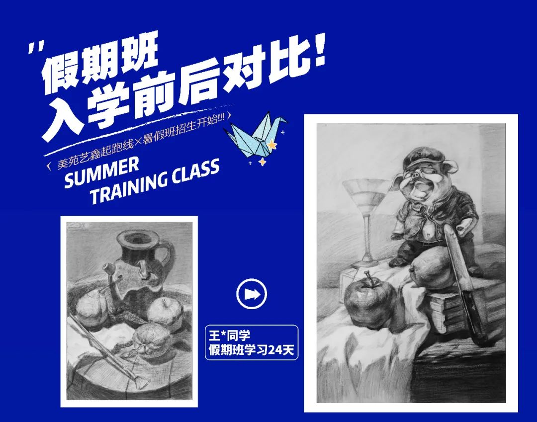 大多數(shù)有意向參加暑假班的學生,都是奔都是奔著藝考這個最終目標來的。無論現(xiàn)在處于學習的哪個階段,提早一些時間接觸美術,總能在最終的時刻獲取一定量的優(yōu)勢,這個優(yōu)勢可能只是幾分之差,但可供的選擇確實天差地別。可以這樣說,通過歷年來的實際情況看,因為一分之差而錯失心儀院校的學生大有人在。